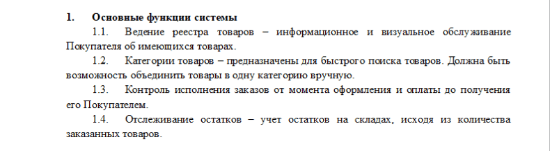 Далее описывают ключевые требования и ожидания заказчика. Это могут быть, например, интеграция с существующим ПО или создание отдельных модулей для различных целей.