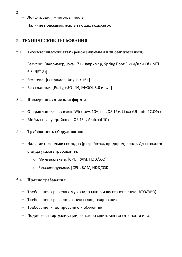 - Стр. 5 Образец ТЗ на разработку ПО
