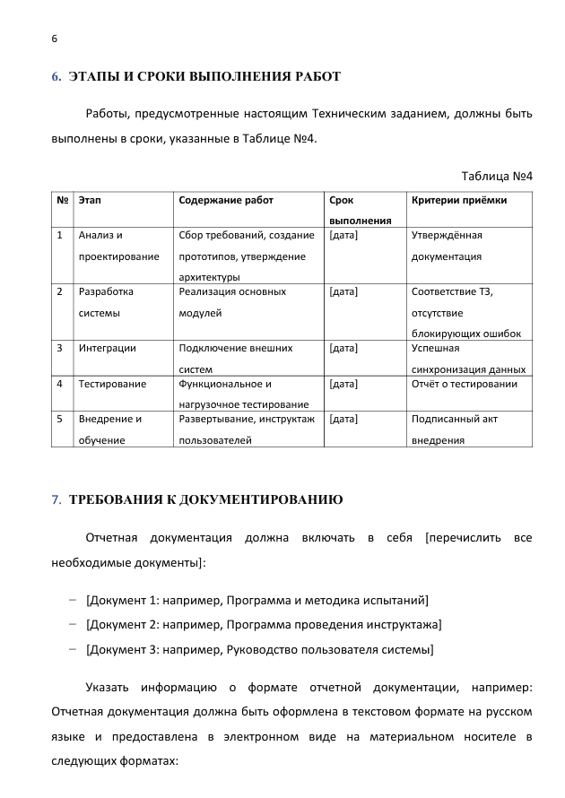 - Стр. 6 Образец ТЗ на разработку ПО